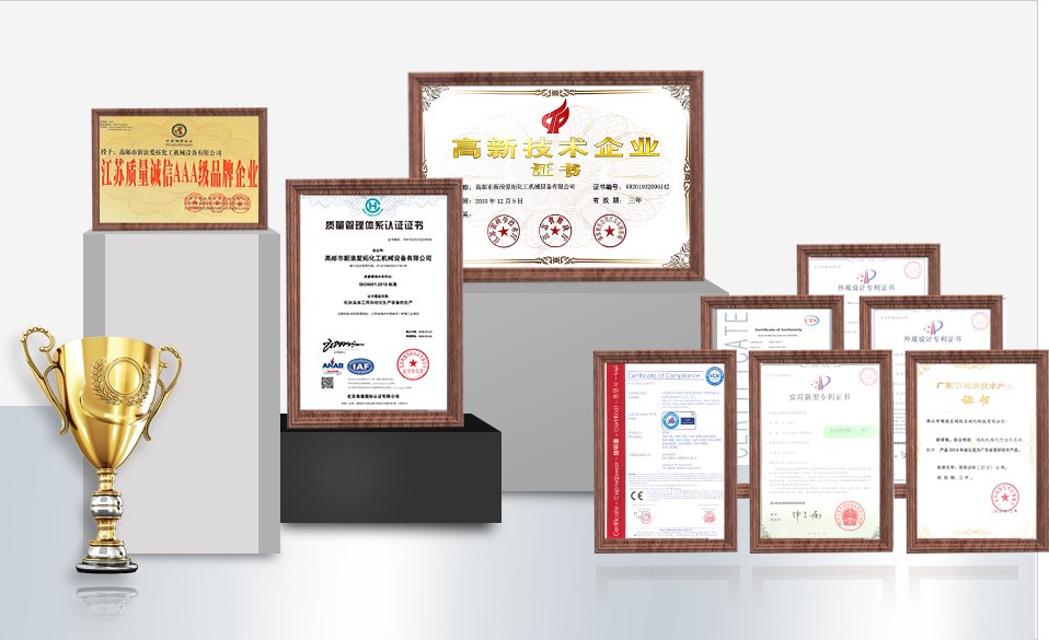 榮獲30余項實用新型和外觀專利證書,乳化機/灌裝機等多款產(chǎn)品被認定為高新技術產(chǎn)品